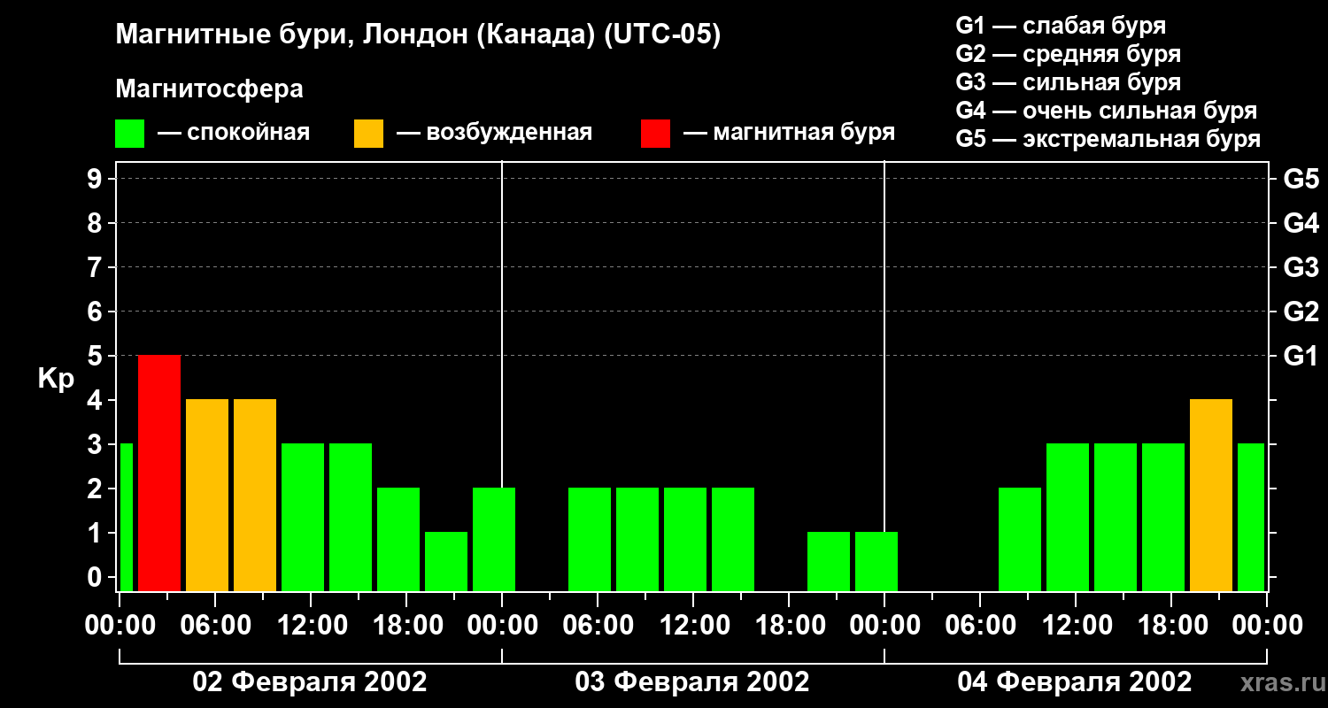 Магнитные бури Лондоне (Канада) в феврале 2002 года