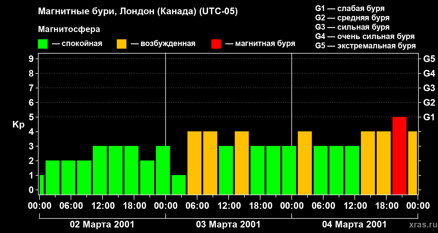 Магнитные бури Лондоне (Канада) — 4 марта 2001 года