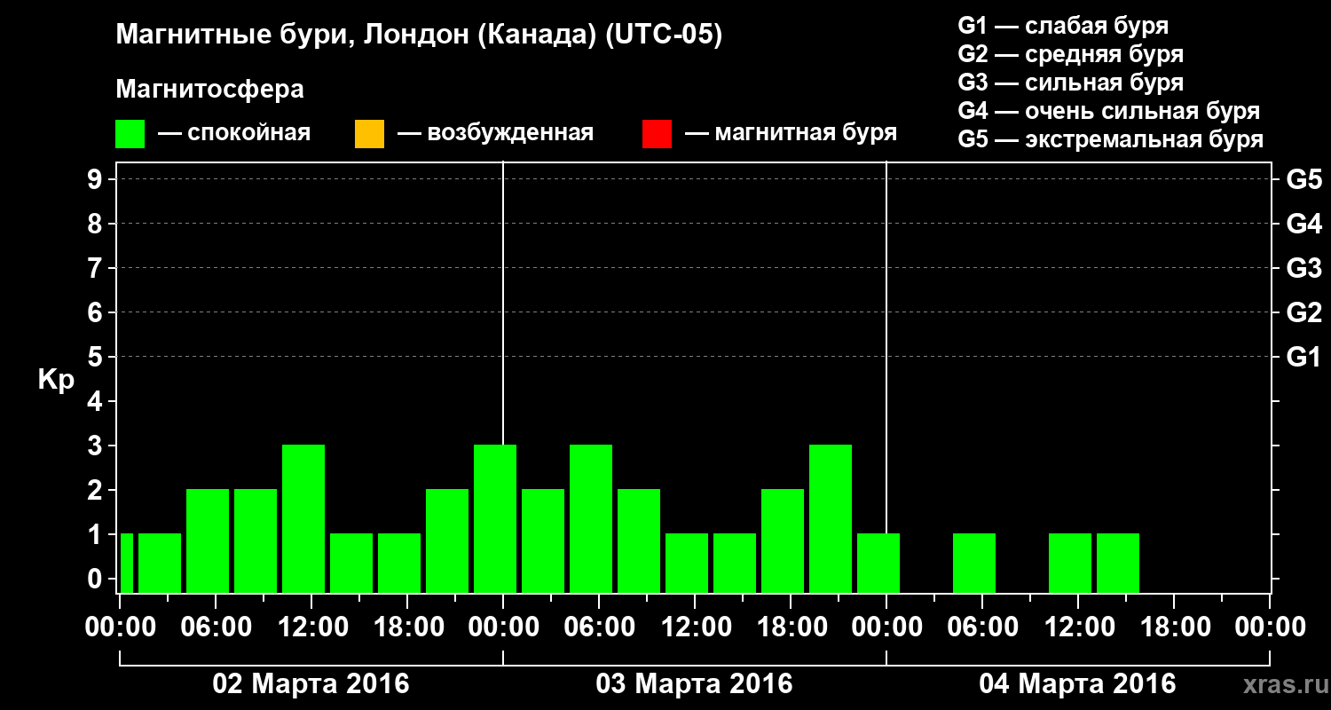 Магнитные бури Лондоне (Канада) 4 марта 2016 года