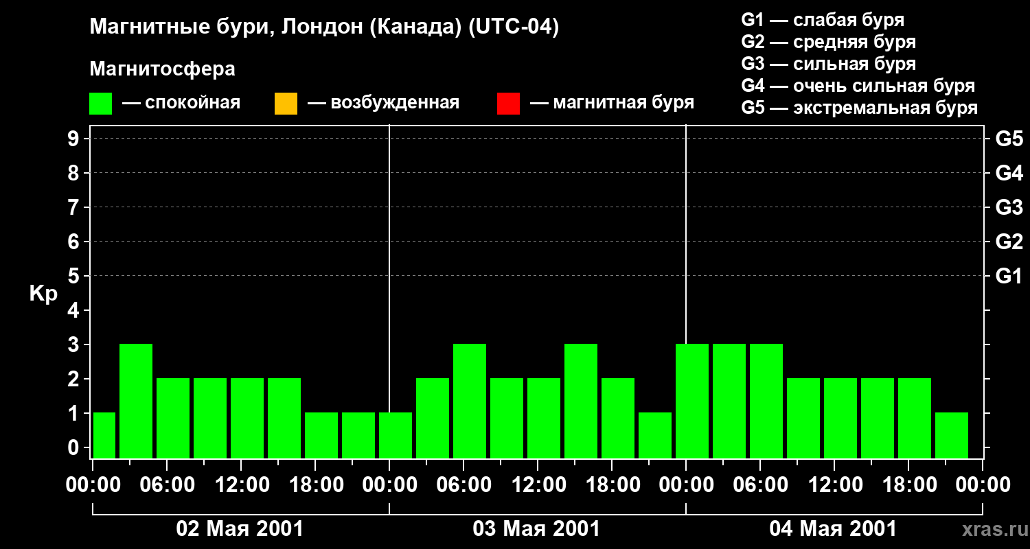 Магнитные бури Лондоне (Канада) 4 мая 2001 года