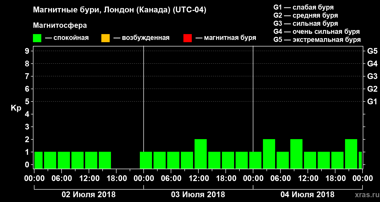 Магнитные бури Лондоне (Канада) 4 июля 2018 года