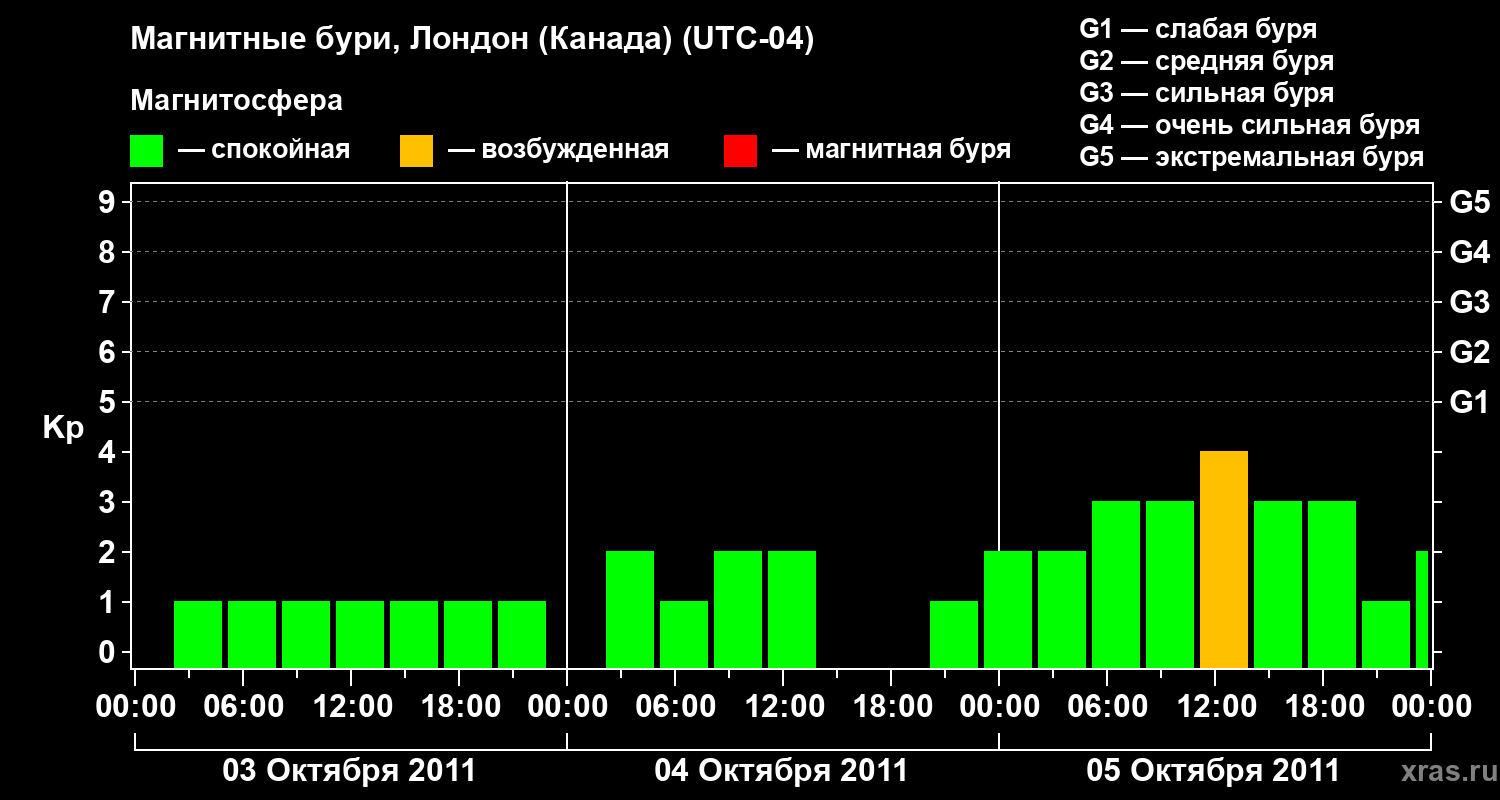Магнитные бури Лондоне (Канада) 5 октября 2011 года