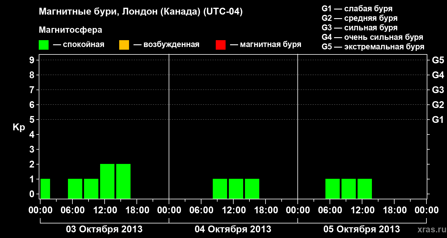 Магнитные бури Лондоне (Канада) 5 октября 2013 года