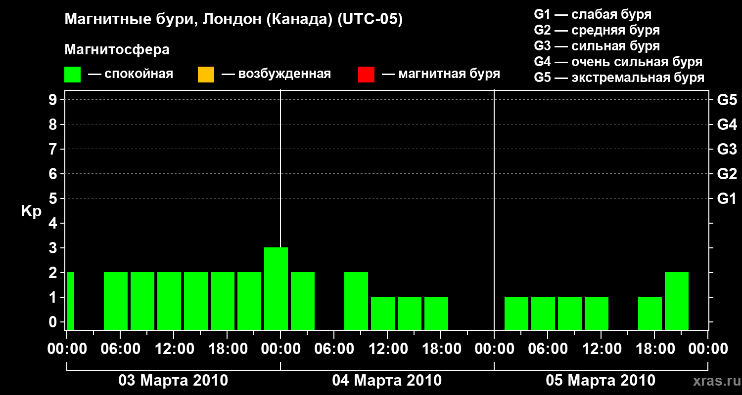 Магнитные бури Лондоне (Канада) 5 марта 2010 года