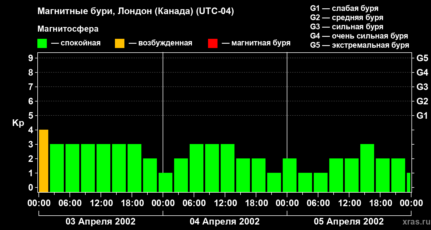 Магнитные бури Лондоне (Канада) в апреле 2002 года