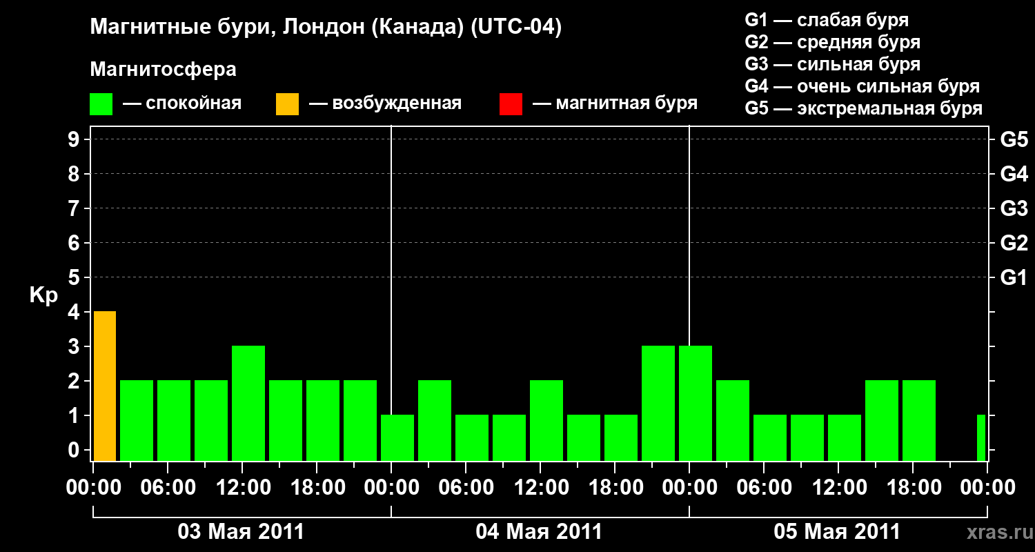 Магнитные бури Лондоне (Канада) 5 мая 2011 года