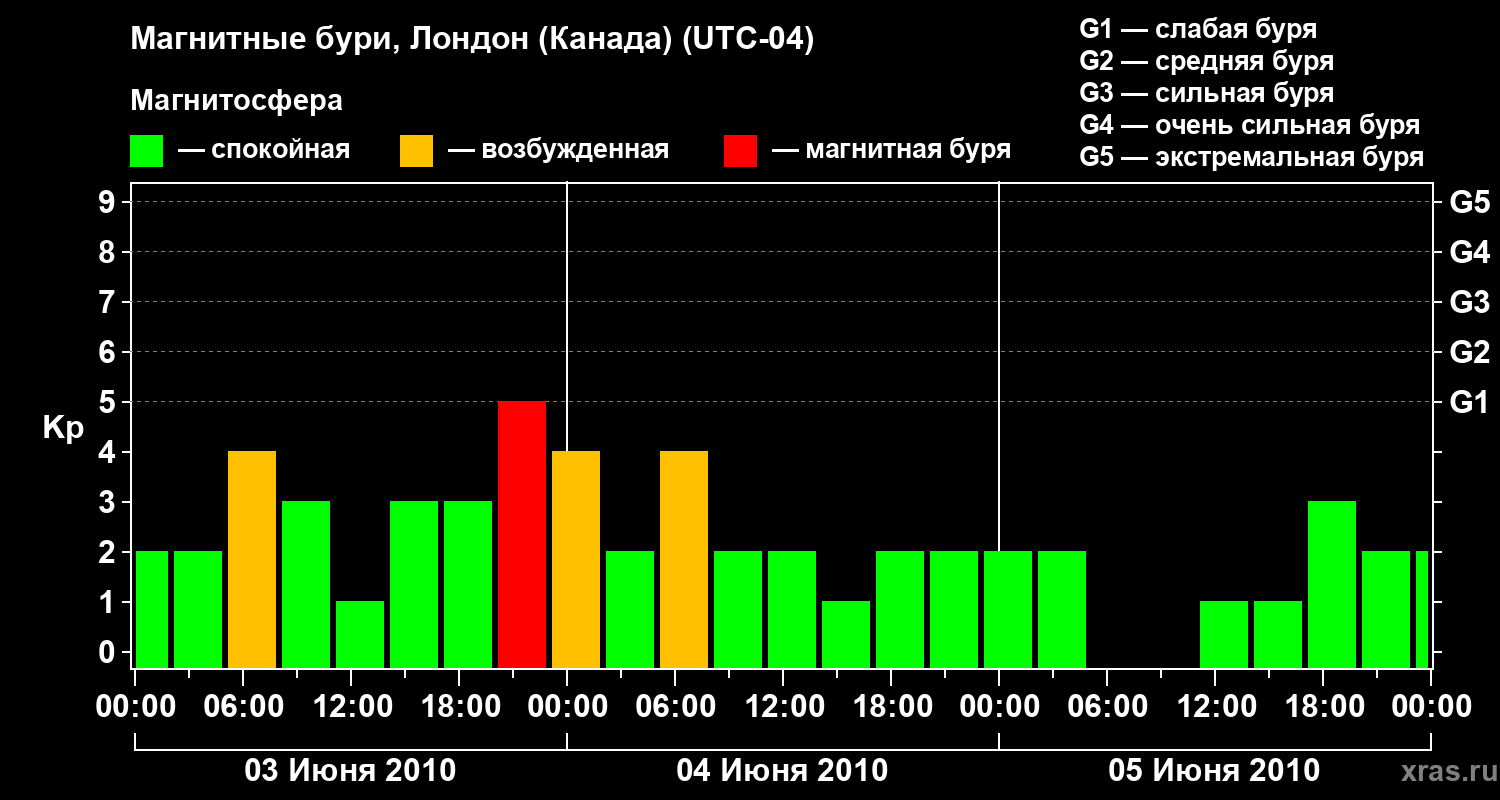 Магнитные бури Лондоне (Канада) 5 июня 2010 года
