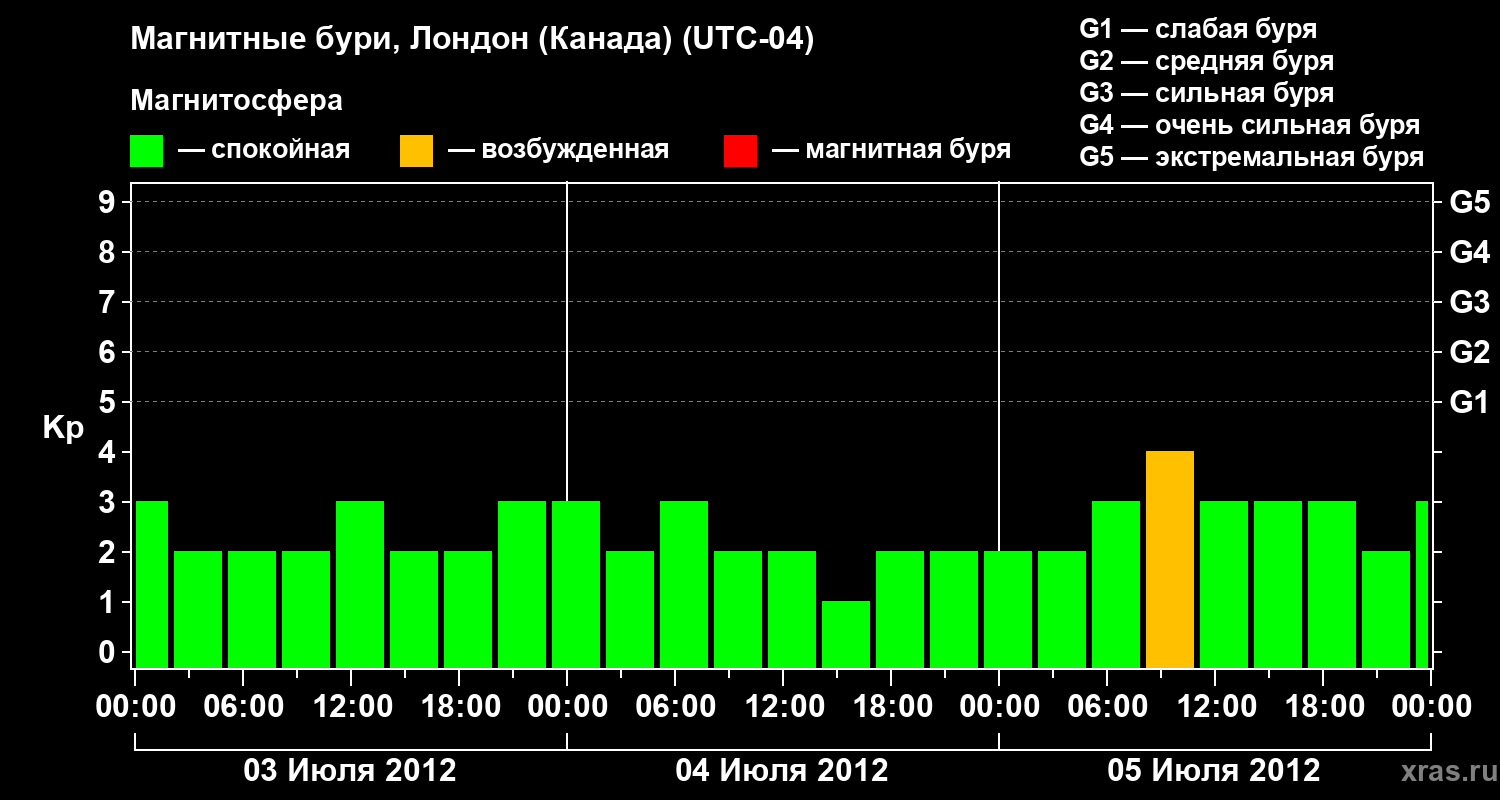 Магнитные бури Лондоне (Канада) в июле 2012 года