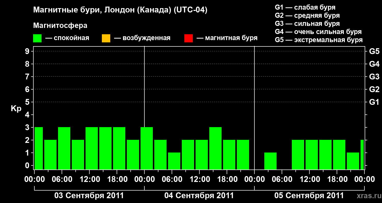 Магнитные бури Лондоне (Канада) в сентябре 2011 года