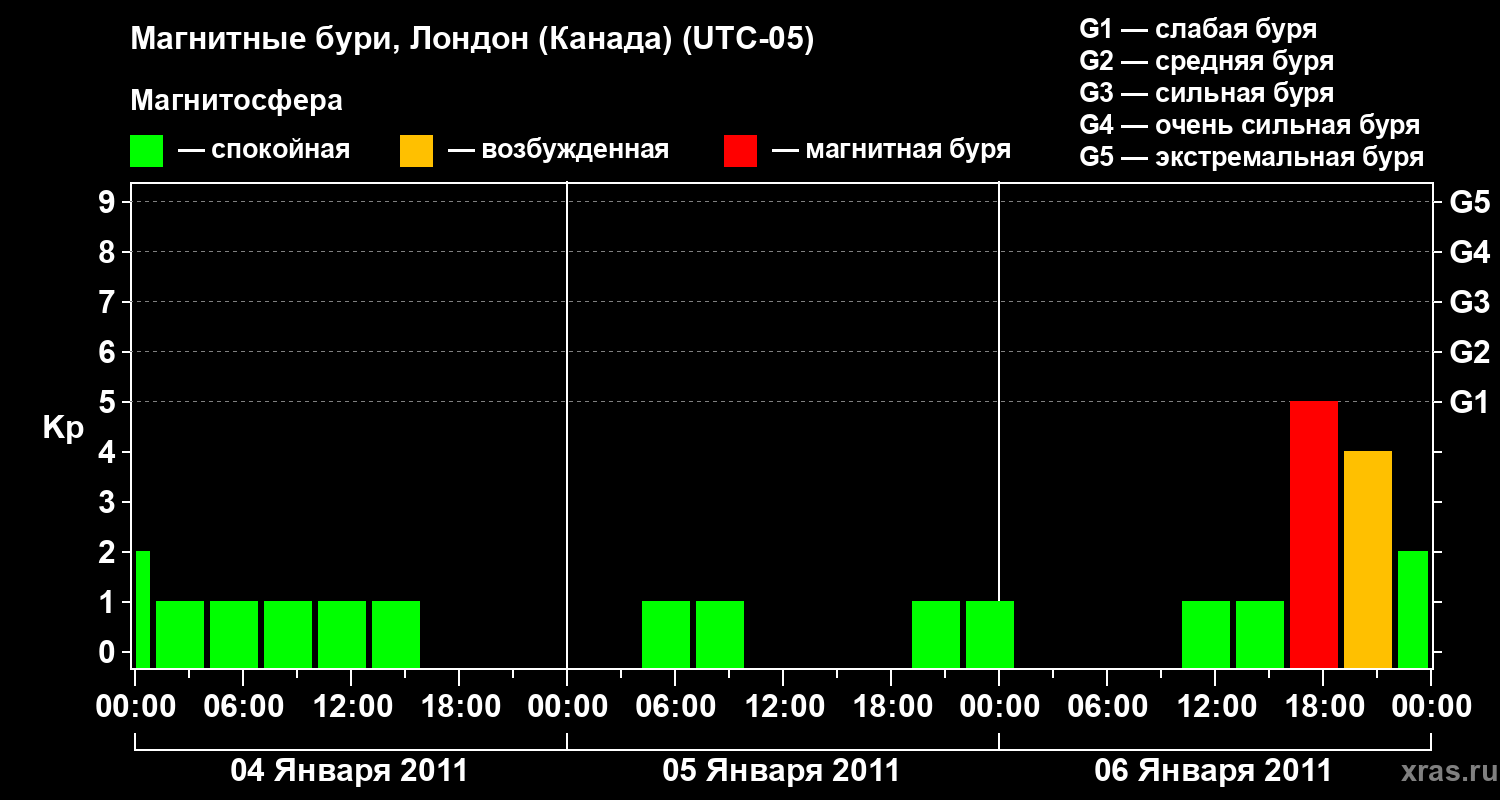 Магнитные бури Лондоне (Канада) 6 января 2011 года
