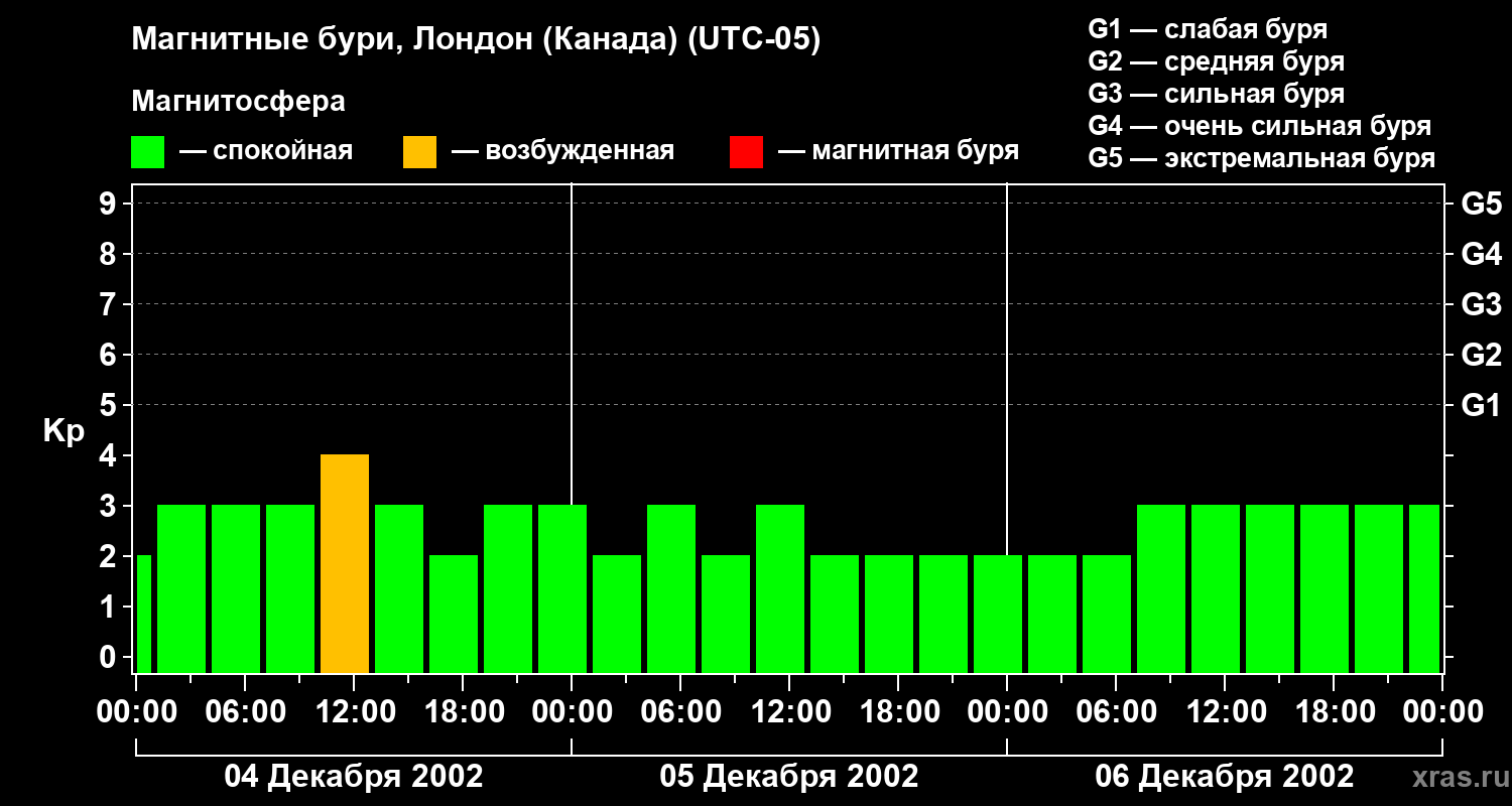 Магнитные бури Лондоне (Канада) в декабре 2002 года