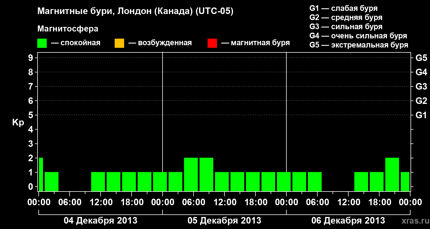 Магнитные бури Лондоне (Канада) в декабре 2013 года