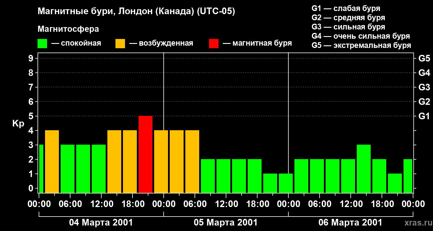 Магнитные бури Лондоне (Канада) в марте 2001 года