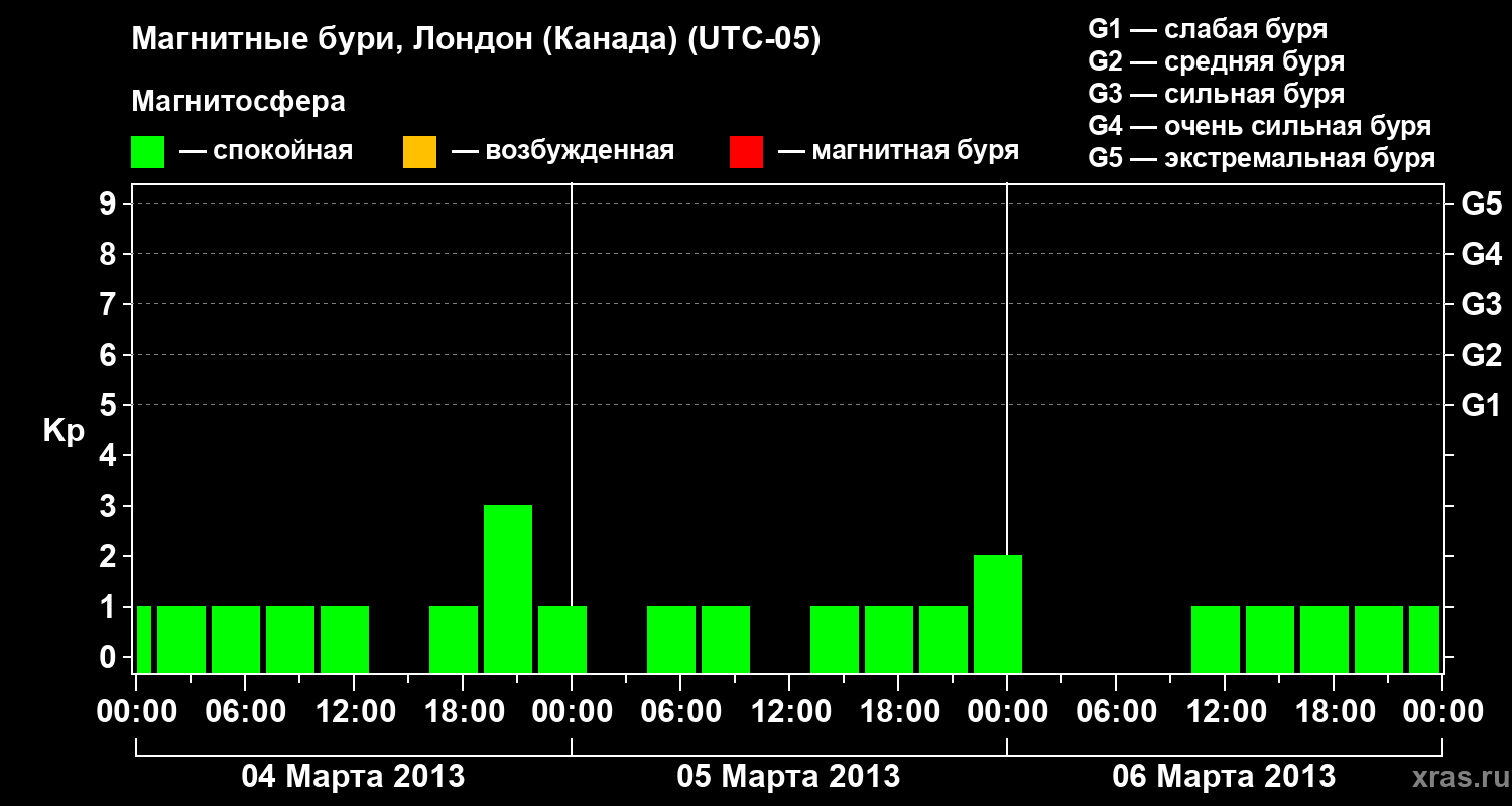 Магнитные бури Лондоне (Канада) в марте 2013 года