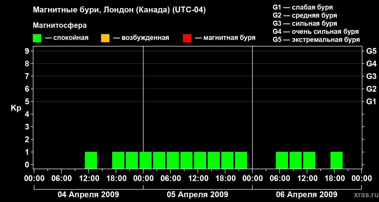 Магнитные бури Лондоне (Канада) в апреле 2009 года