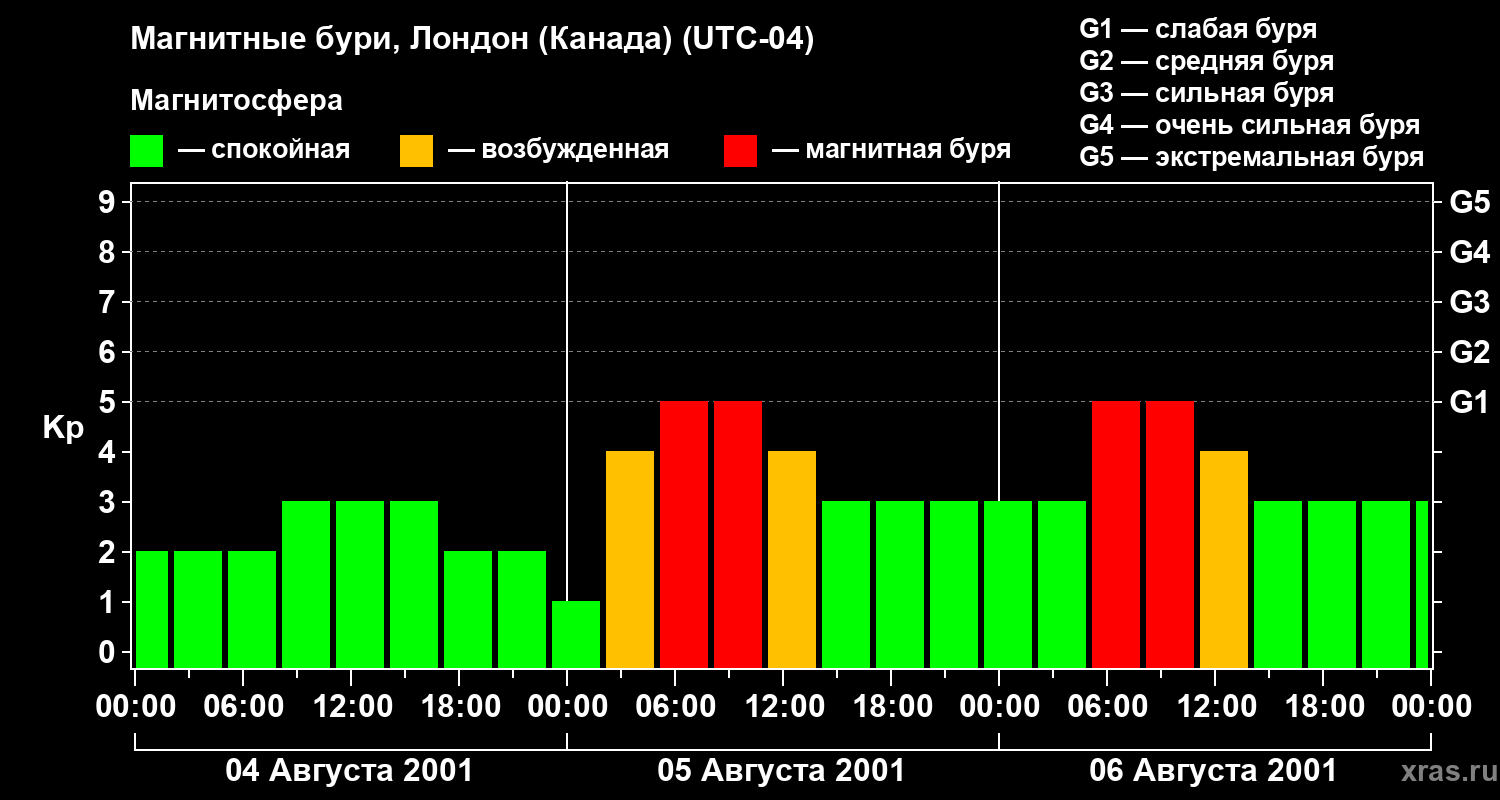 Магнитные бури Лондоне (Канада) 6 августа 2001 года