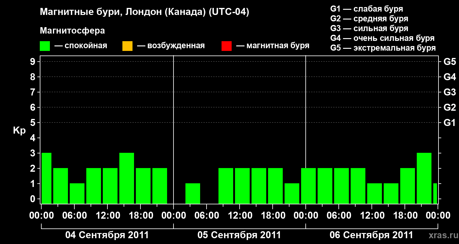Магнитные бури Лондоне (Канада) в сентябре 2011 года