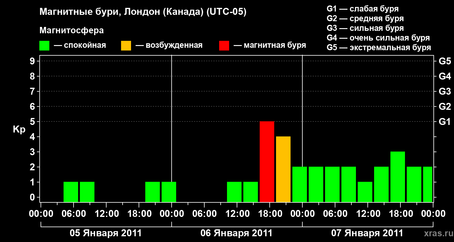 Магнитные бури Лондоне (Канада) 7 января 2011 года
