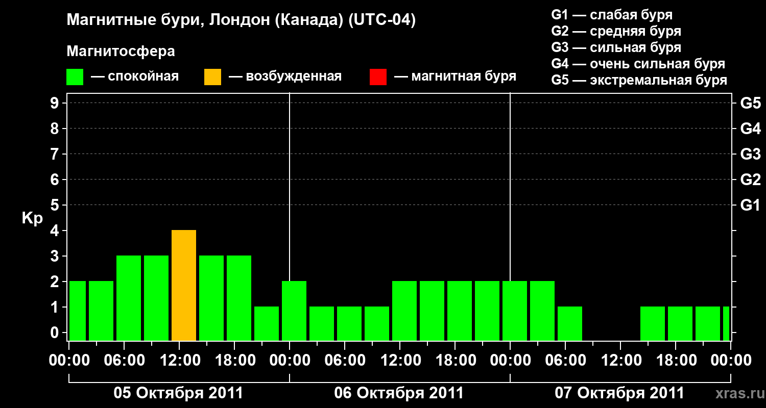 Магнитные бури Лондоне (Канада) в октябре 2011 года