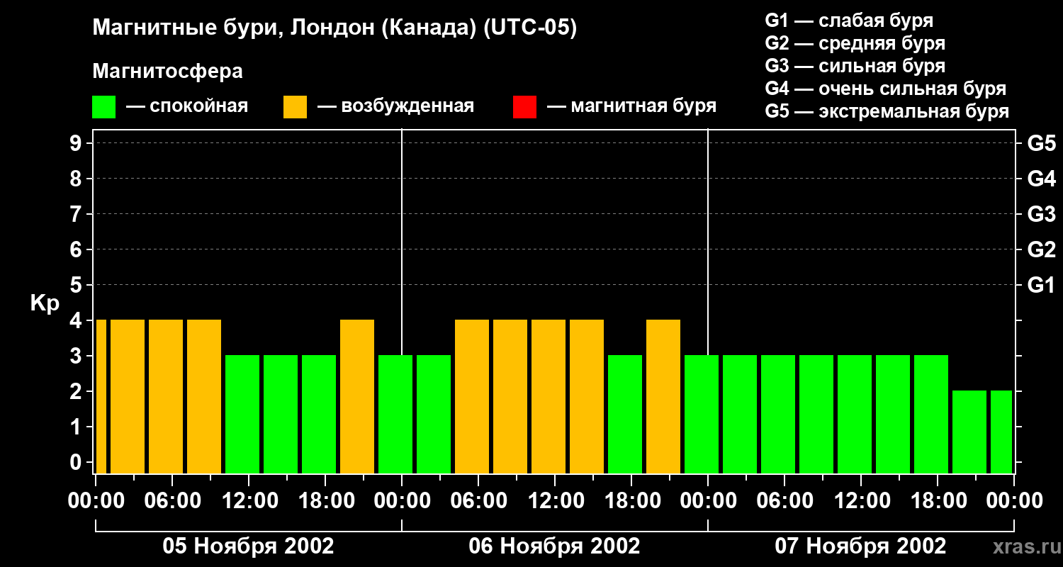 Магнитные бури Лондоне (Канада) в ноябре 2002 года