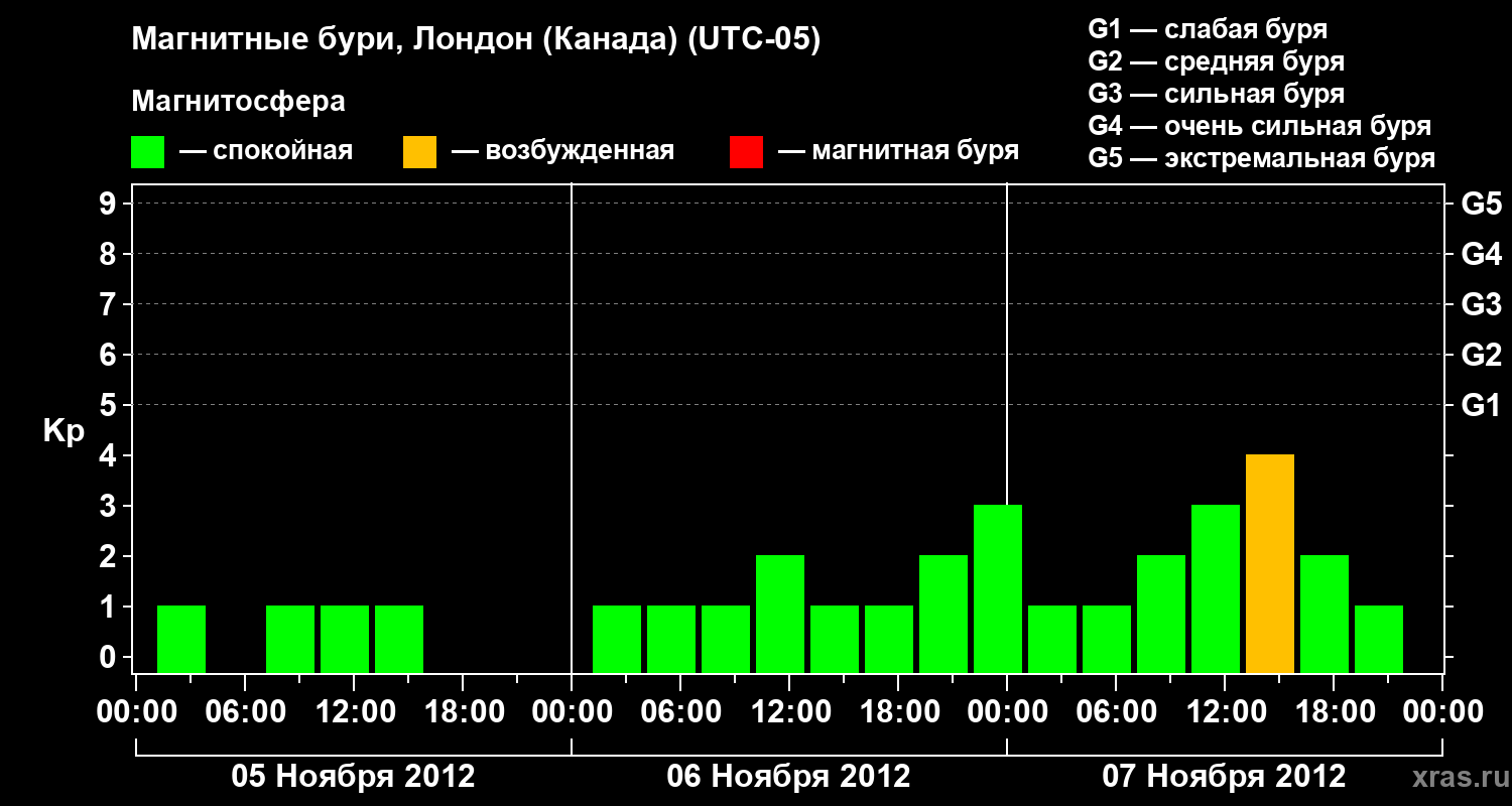 Магнитные бури Лондоне (Канада) в ноябре 2012 года
