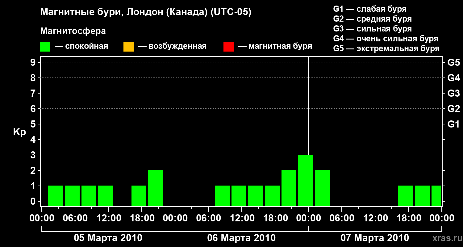 Магнитные бури Лондоне (Канада) — 7 марта 2010 года