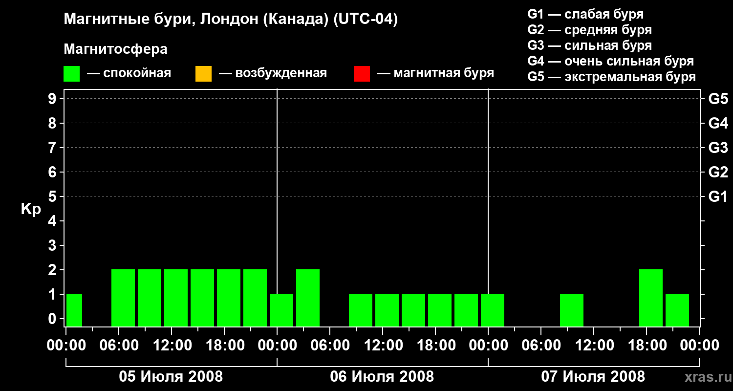 Магнитные бури Лондоне (Канада) в июле 2008 года