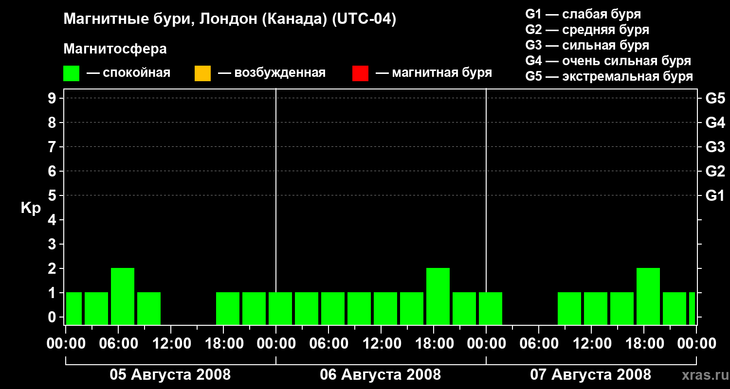 Магнитные бури Лондоне (Канада) в августе 2008 года
