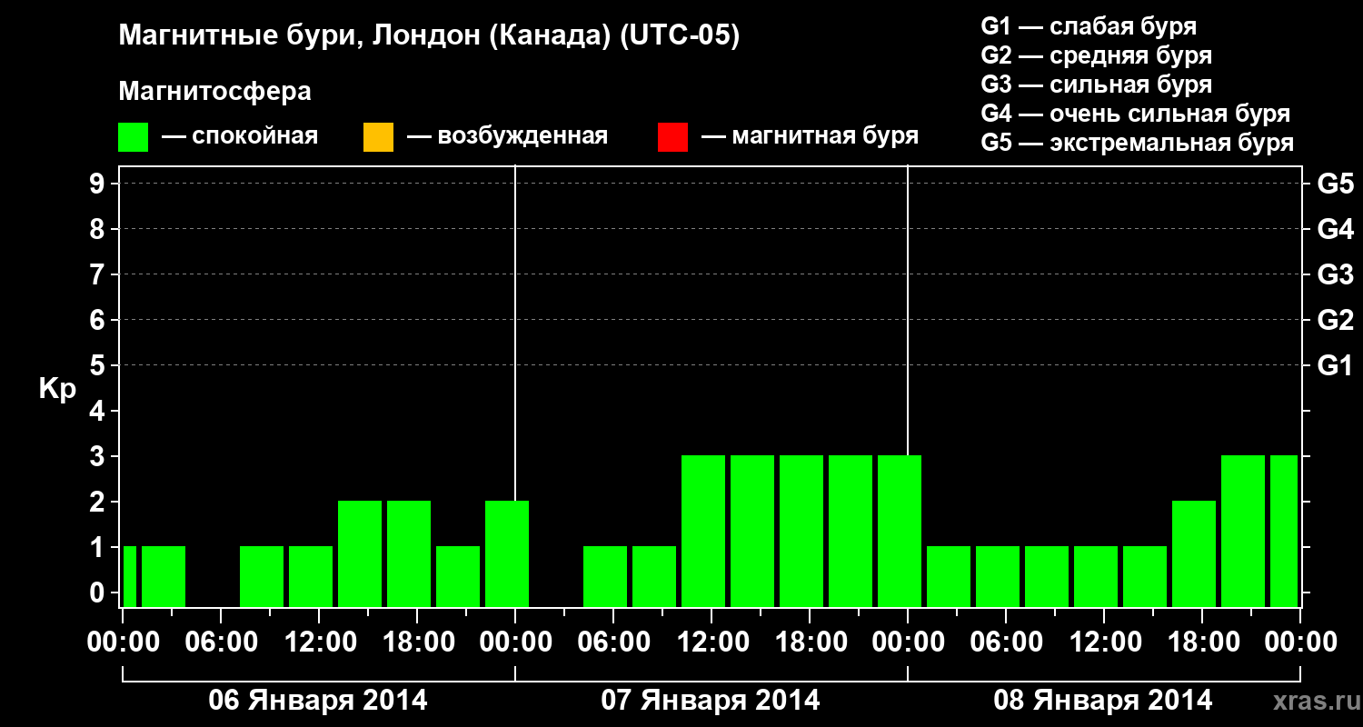 Магнитные бури Лондоне (Канада) 8 января 2014 года