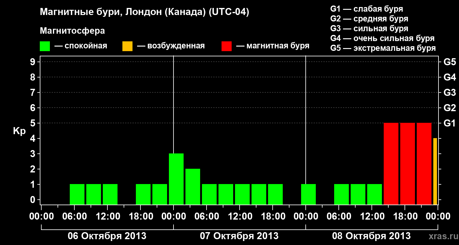 Магнитные бури Лондоне (Канада) 8 октября 2013 года