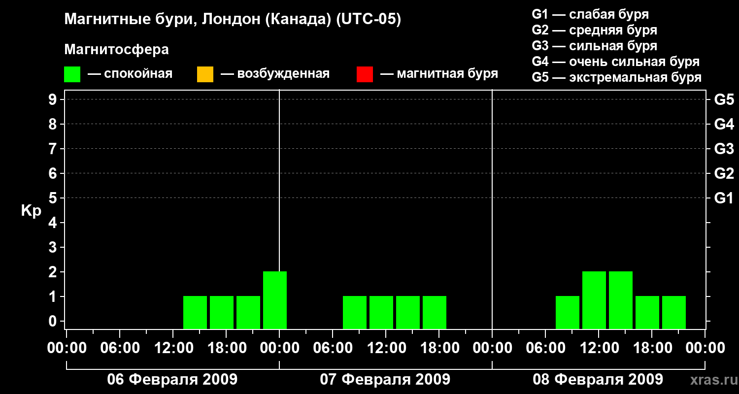 Магнитные бури Лондоне (Канада) в феврале 2009 года