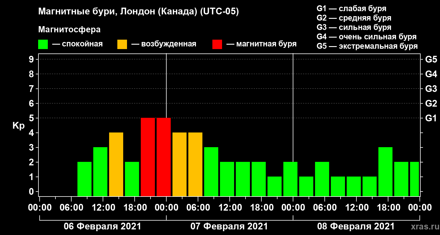 Магнитные бури Лондоне (Канада) в феврале 2021 года
