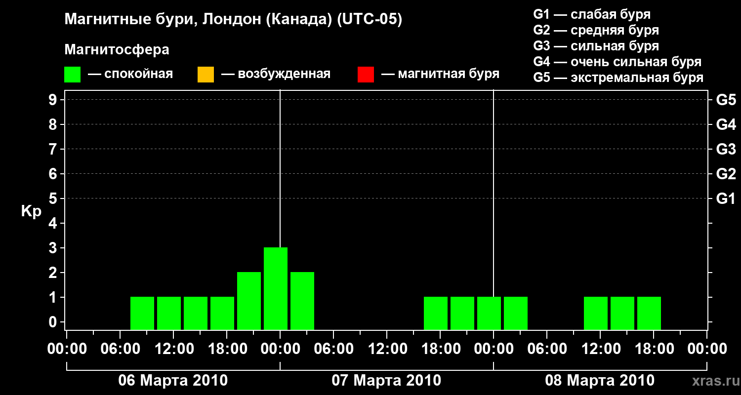 Магнитные бури Лондоне (Канада) 8 марта 2010 года