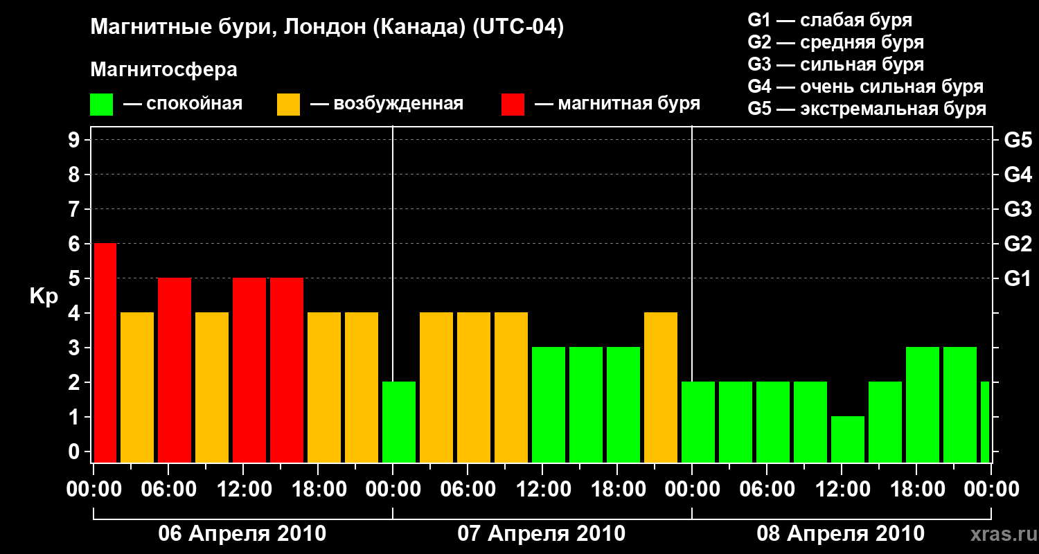 Магнитные бури Лондоне (Канада) в апреле 2010 года