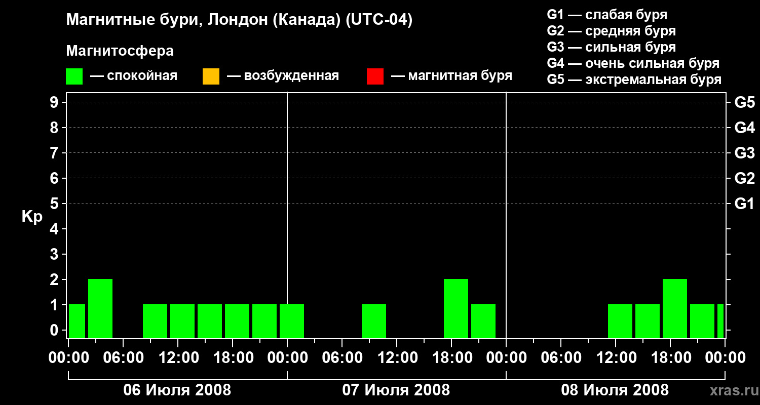 Магнитные бури Лондоне (Канада) в июле 2008 года