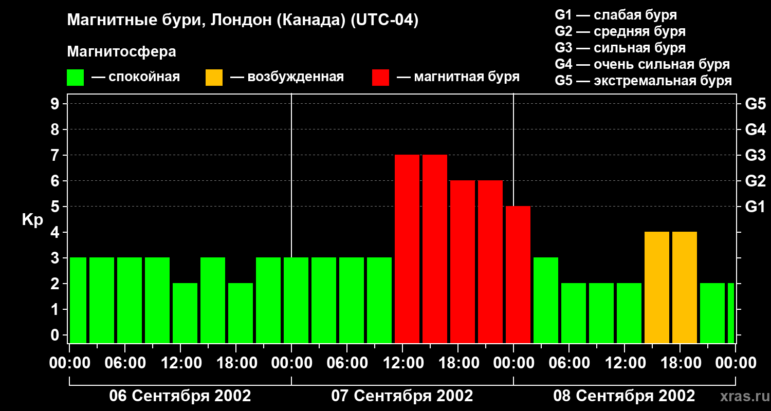 Магнитные бури Лондоне (Канада) в сентябре 2002 года