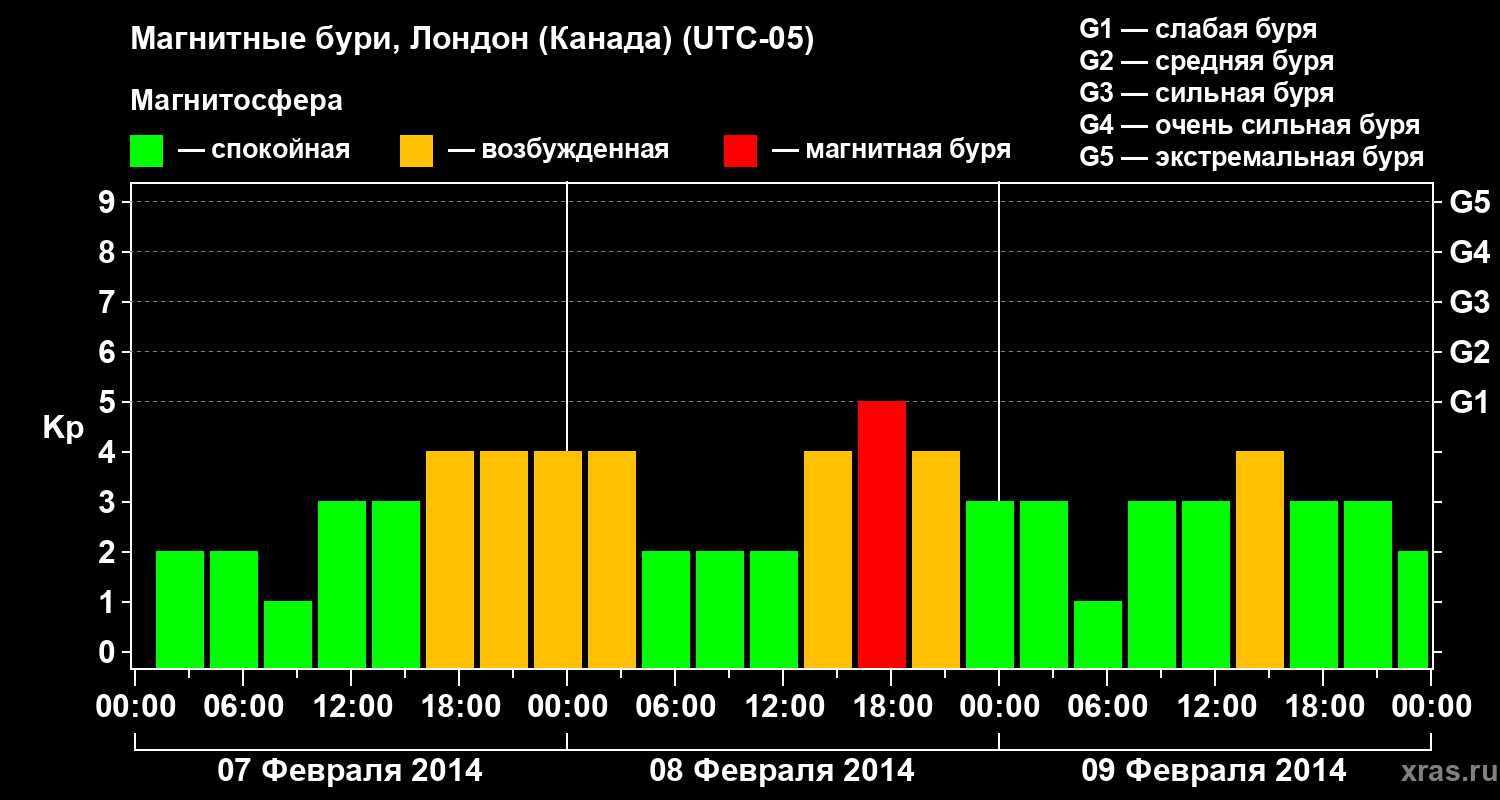 Магнитные бури Лондоне (Канада) в феврале 2014 года