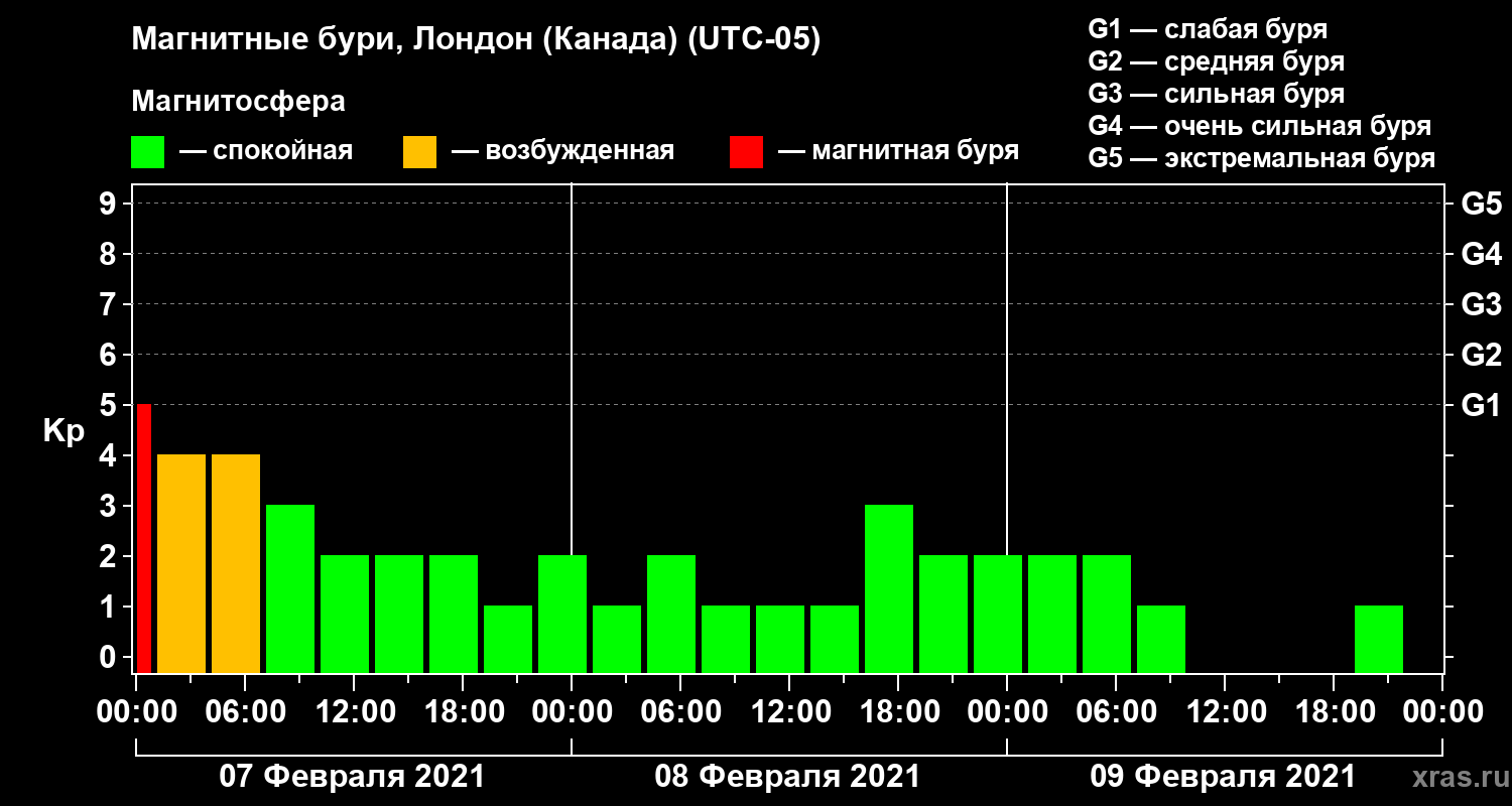 Магнитные бури Лондоне (Канада) в феврале 2021 года