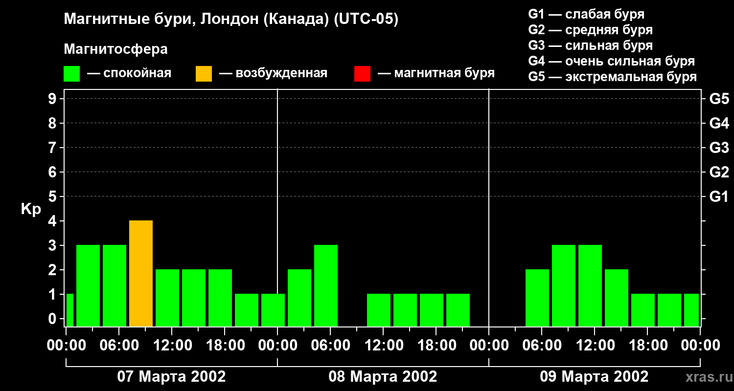 Магнитные бури Лондоне (Канада) — 9 марта 2002 года
