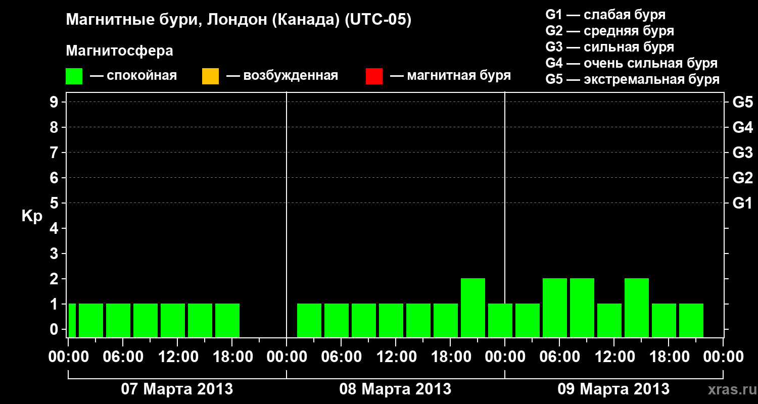 Магнитные бури Лондоне (Канада) 9 марта 2013 года