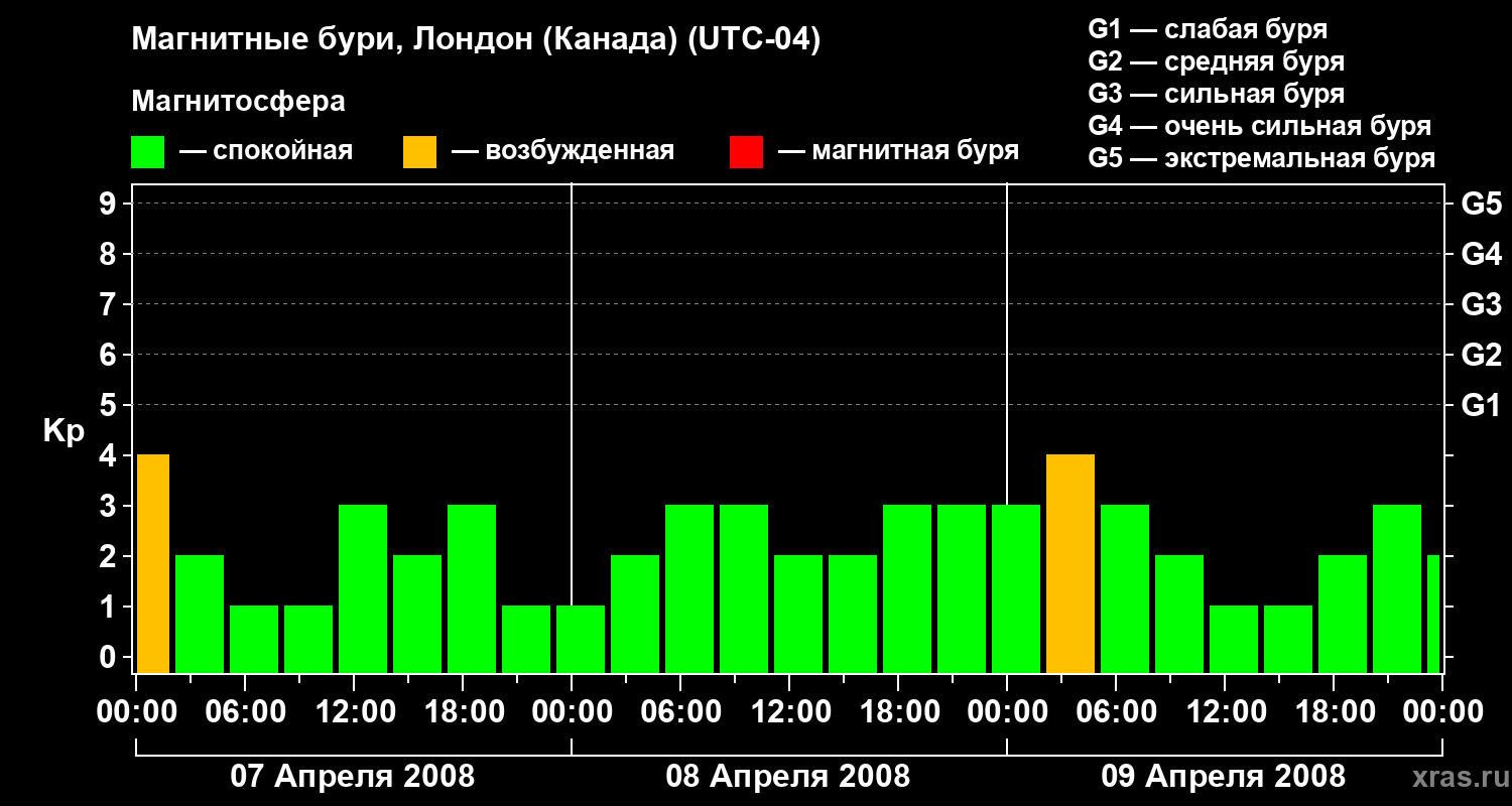 Магнитные бури Лондоне (Канада) — 9 апреля 2008 года