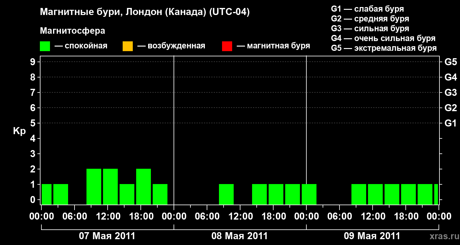 Магнитные бури Лондоне (Канада) 9 мая 2011 года