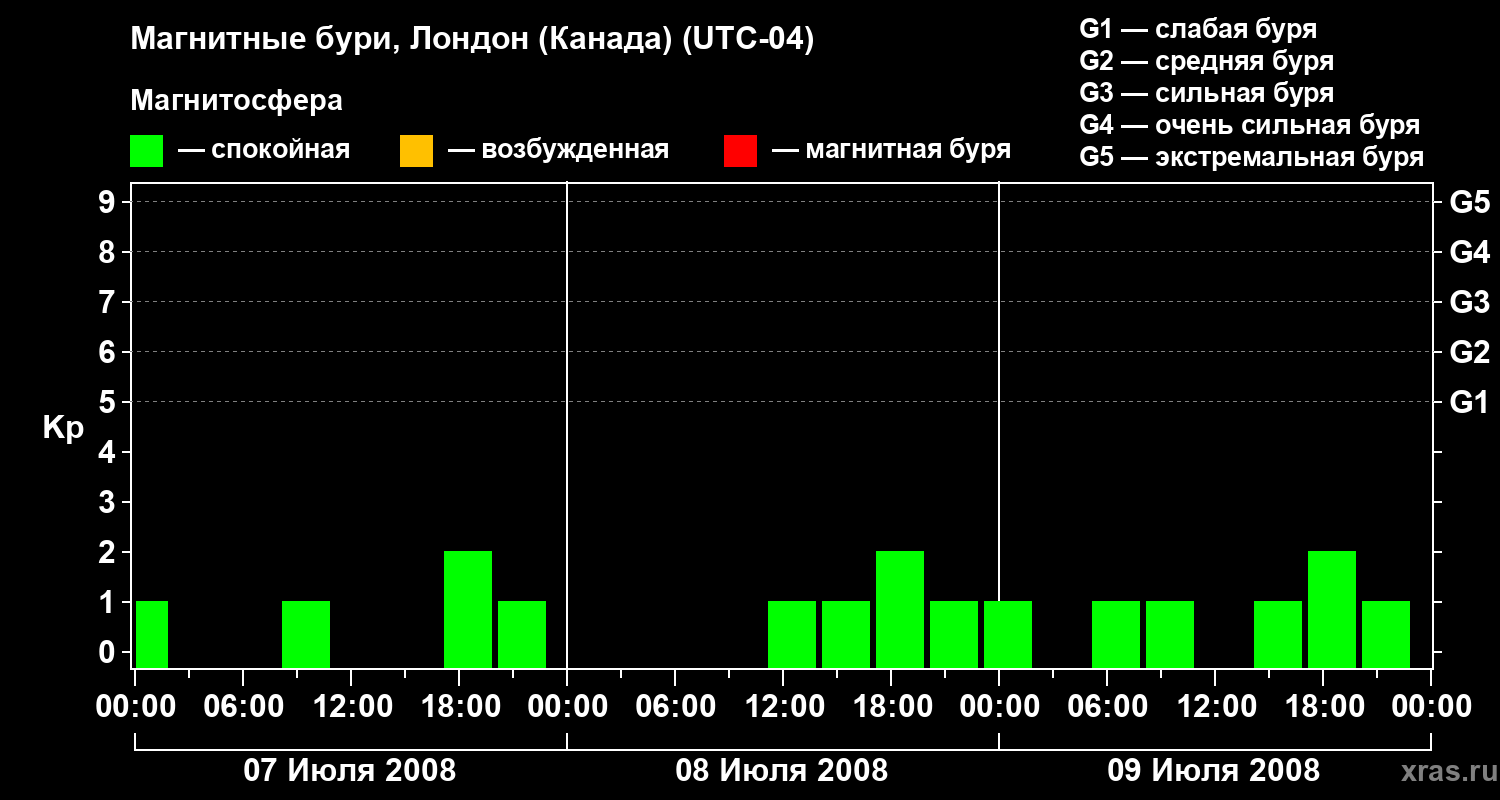 Магнитные бури Лондоне (Канада) в июле 2008 года