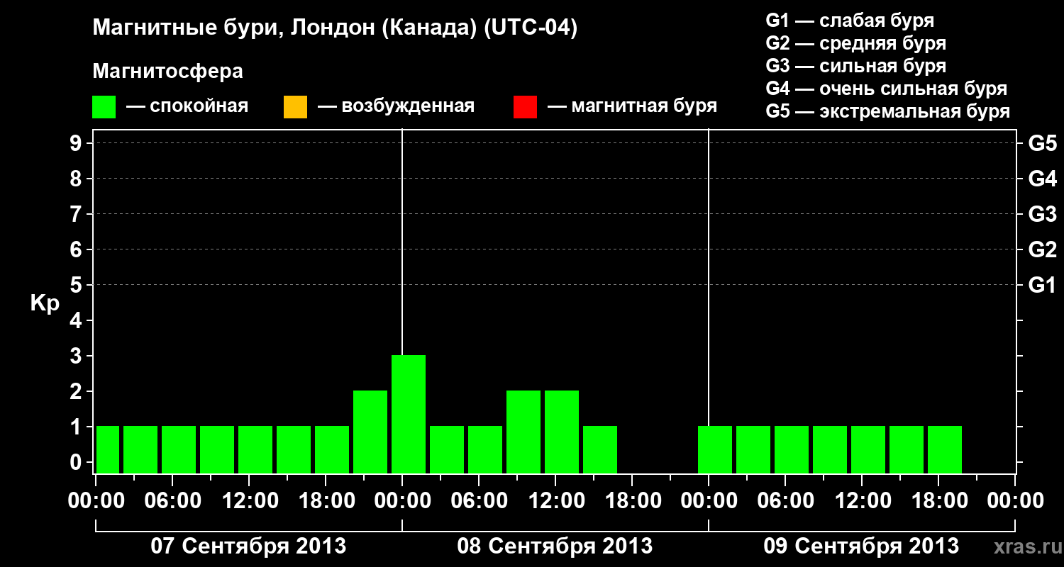 Магнитные бури Лондоне (Канада) 9 сентября 2013 года