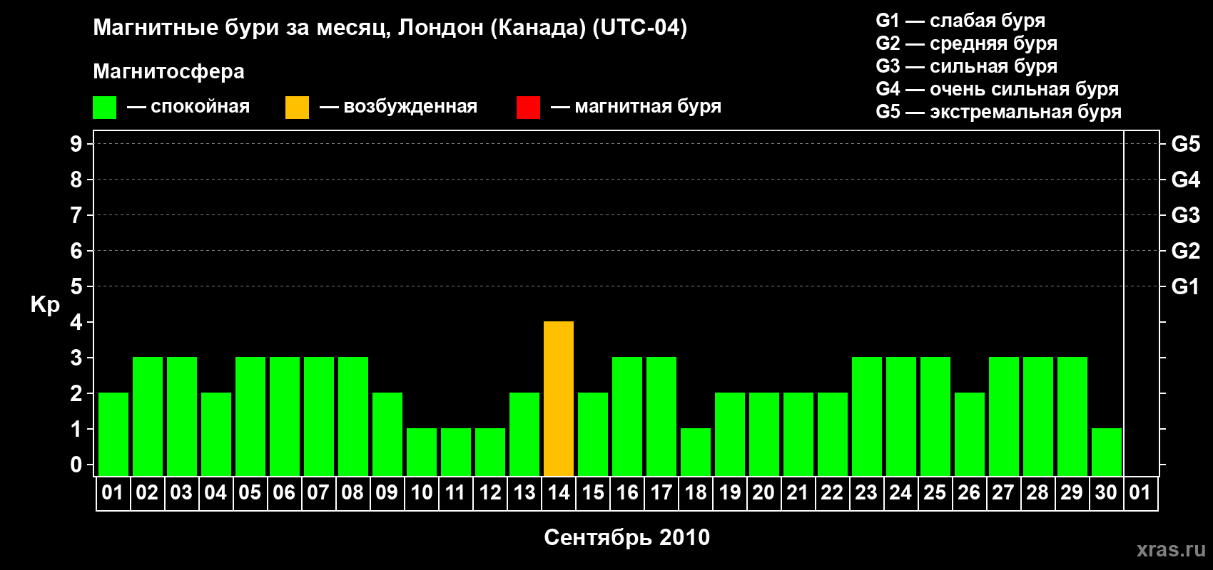 14 сентября 2010 года — геомагнитные возмущения