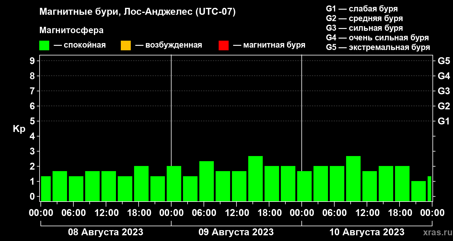 Магнитные бури в Лос-Анджелесе — 10 августа 2023 года
