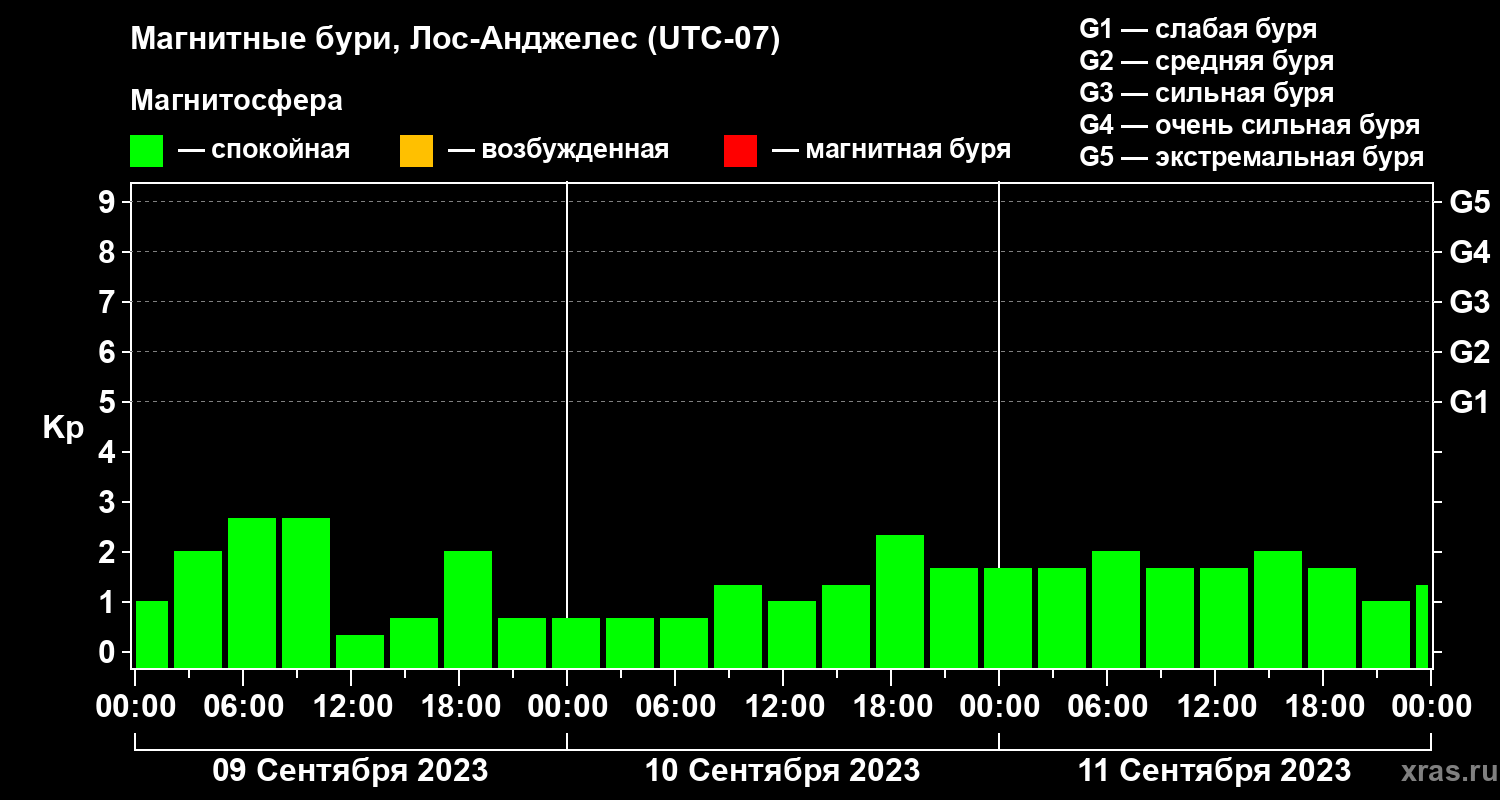 Магнитные бури в Лос-Анджелесе — 11 сентября 2023 года