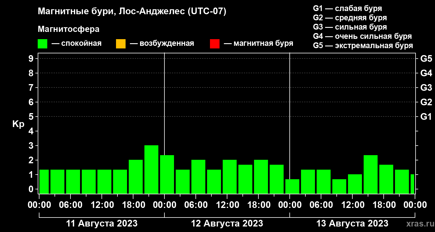 Магнитные бури в Лос-Анджелесе — 13 августа 2023 года
