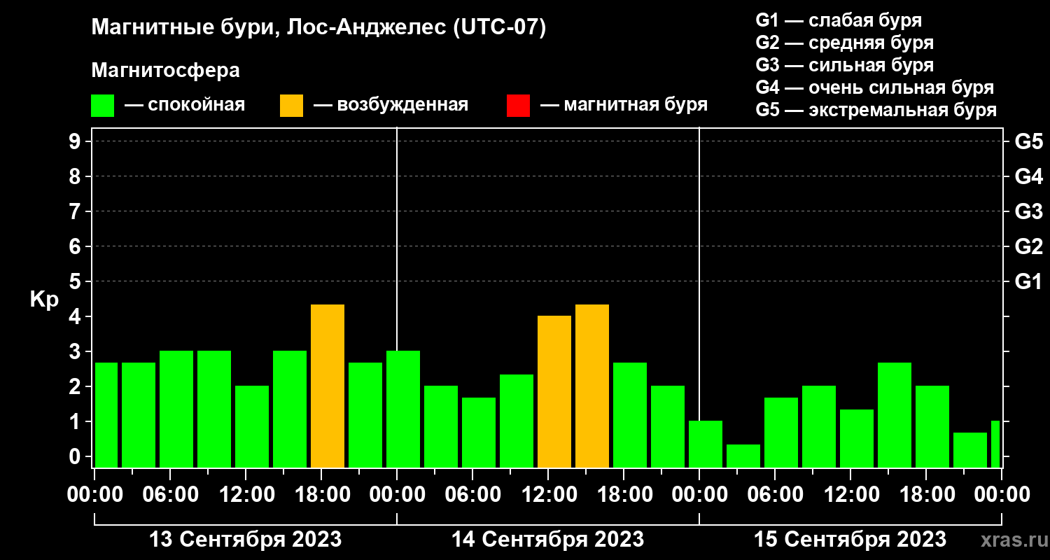 Магнитные бури в Лос-Анджелесе — 15 сентября 2023 года