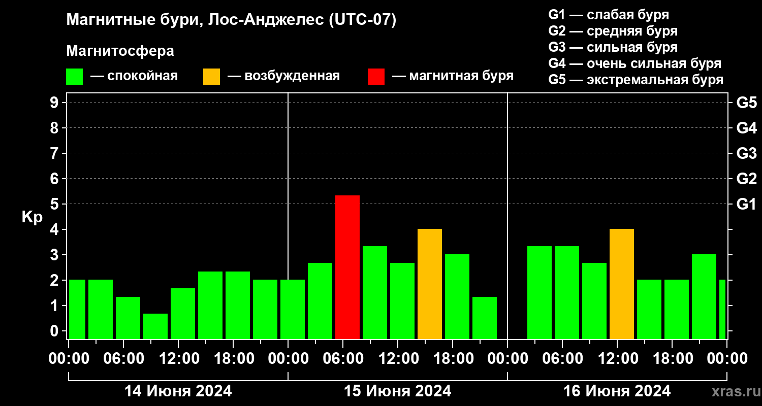 Магнитные бури в Лос-Анджелесе — 16 июня 2024 года
